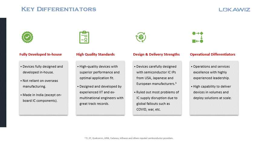 - Operational Differentiators: We offer operations and service excellence to our customers with highly experienced leadership. We have a high capability to deliver devices in volumes and deploy solutions at scale.